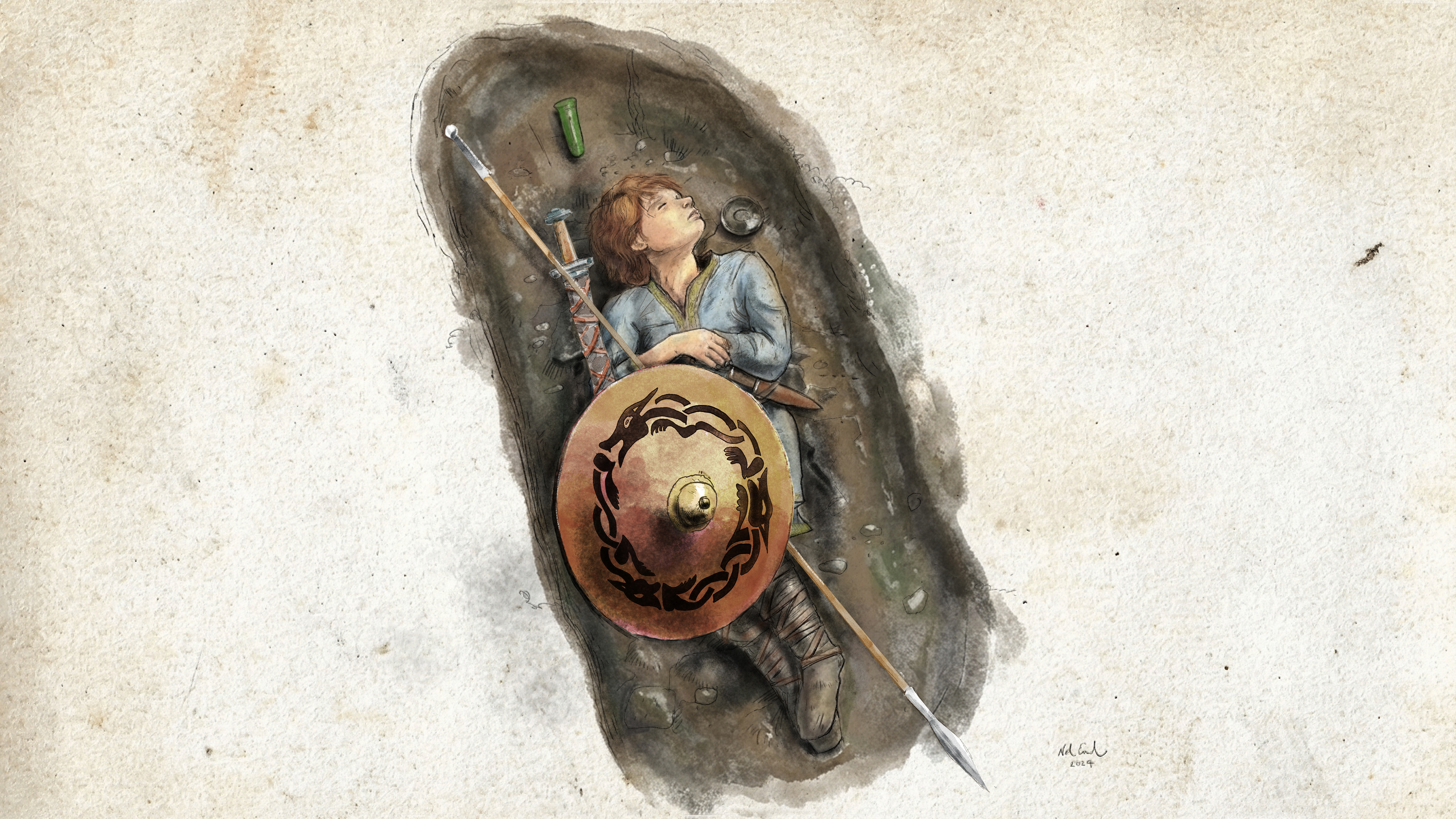 This is an illustration of Sir Walter Raleigh for the Time Team special show about the Sutton Hoo ship.